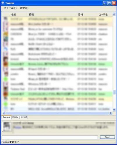 Tween is the client program of twitter. Software requirements OS: Windows 2k/XP/Vista .Net Framework2.0 SP1(or later) Overview Not use twitter API, but get the html(/home,/replies,/directmessage) from twitter web page and scrape it. State …